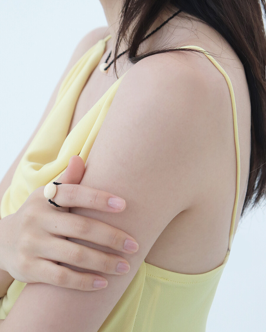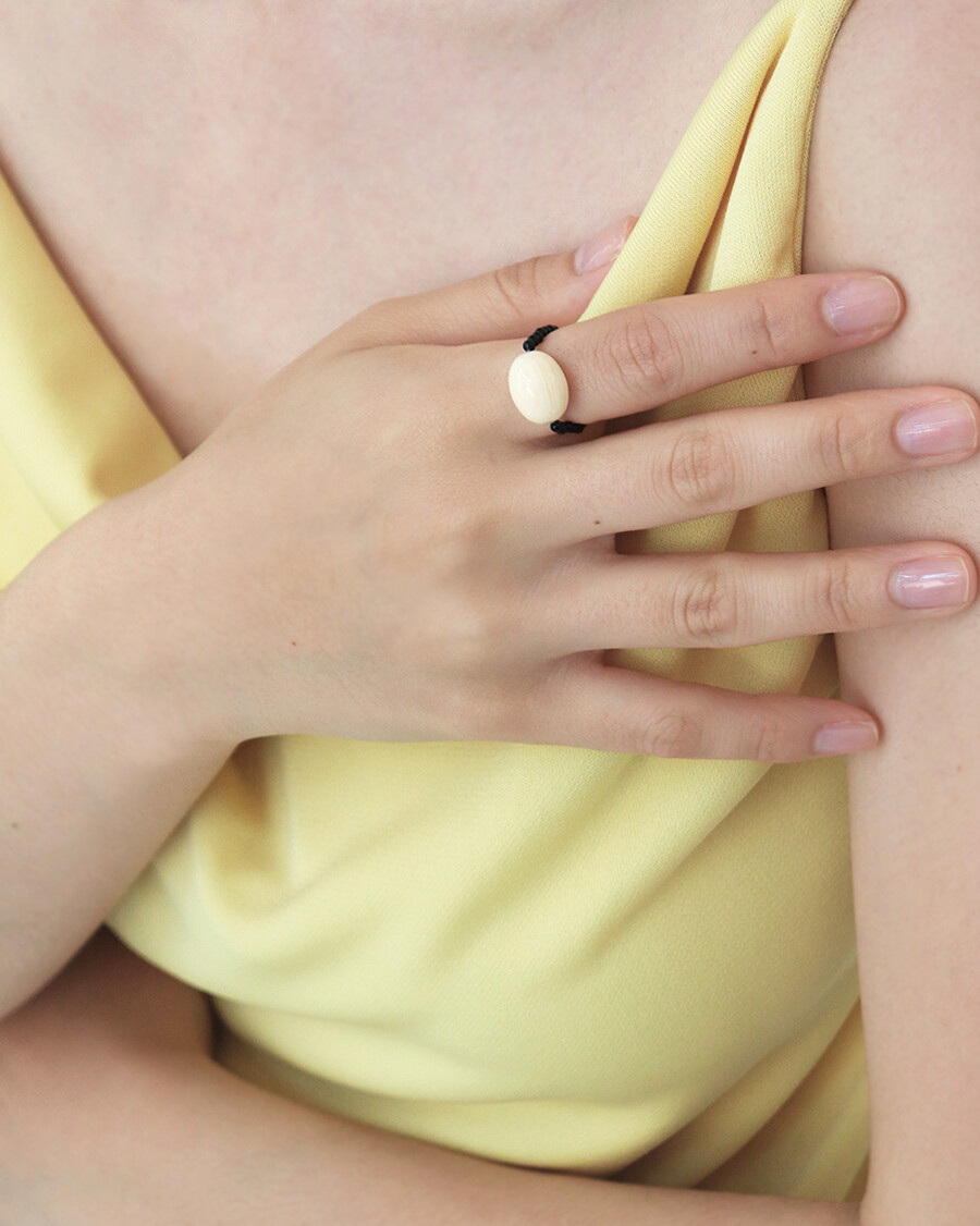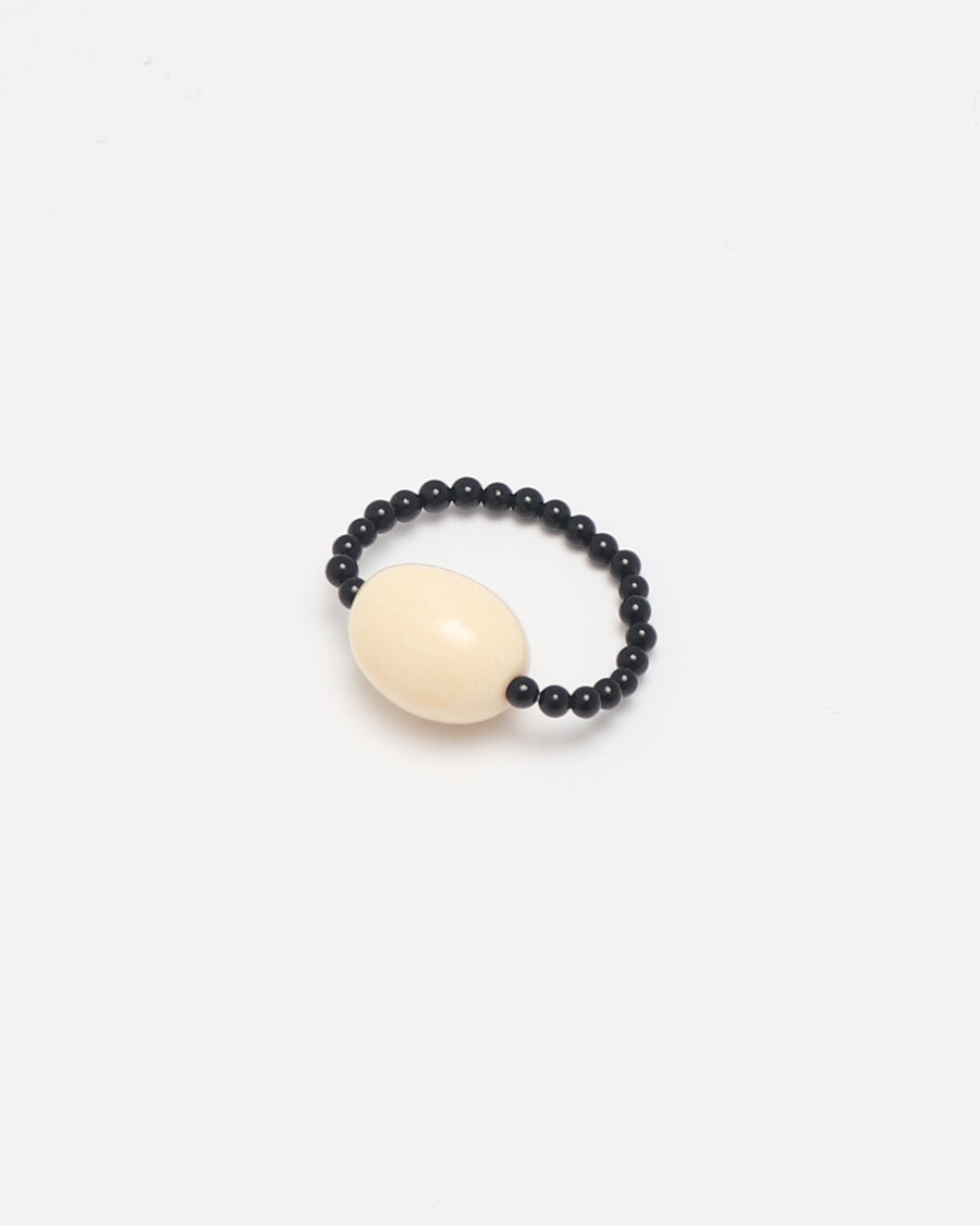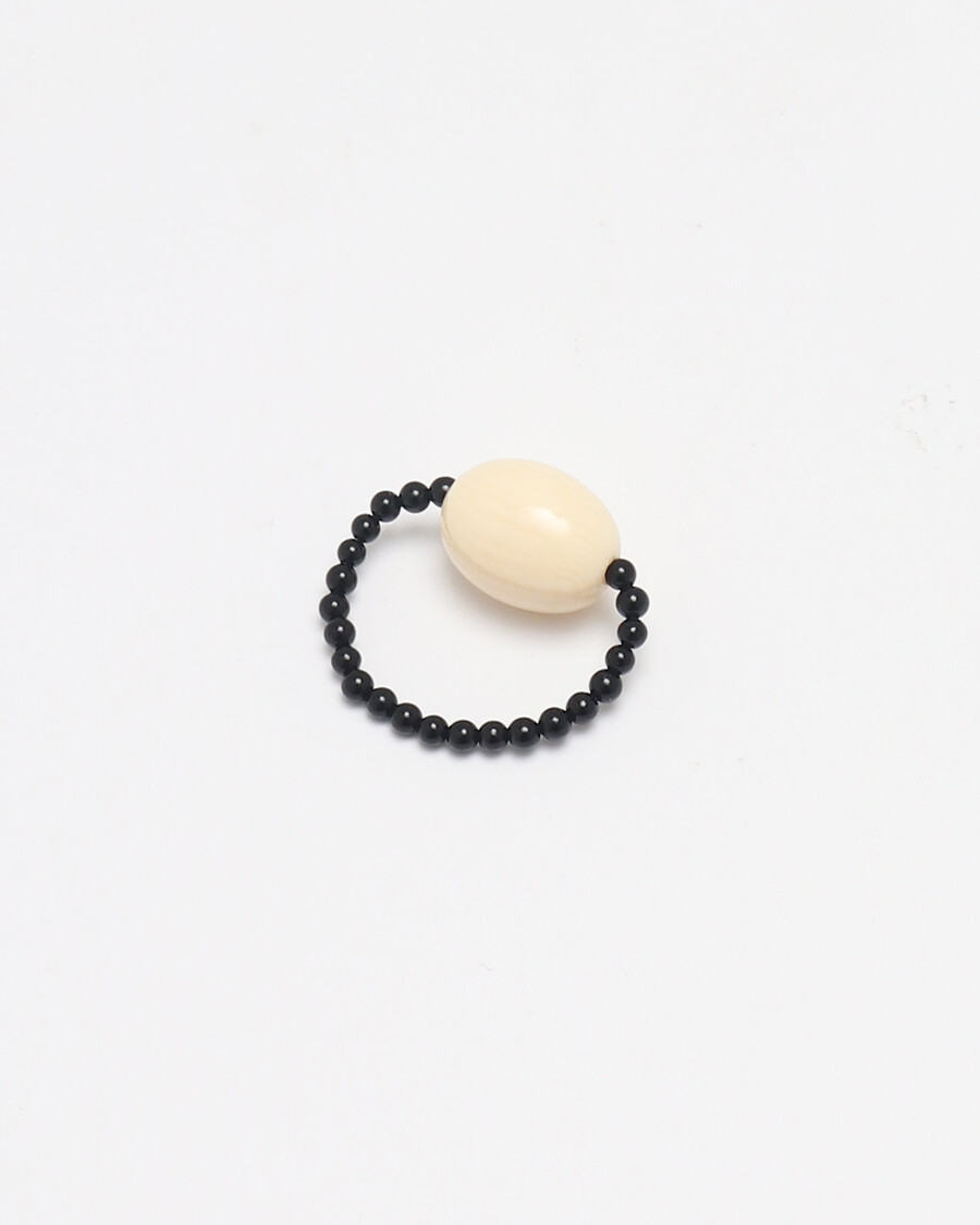 정교하게 깎은 오닉스 비즈 줄 중간에 상아 파우더를 압축한 오묘한 무늬의 타원형 팬던트를 넣은 제품입니다.