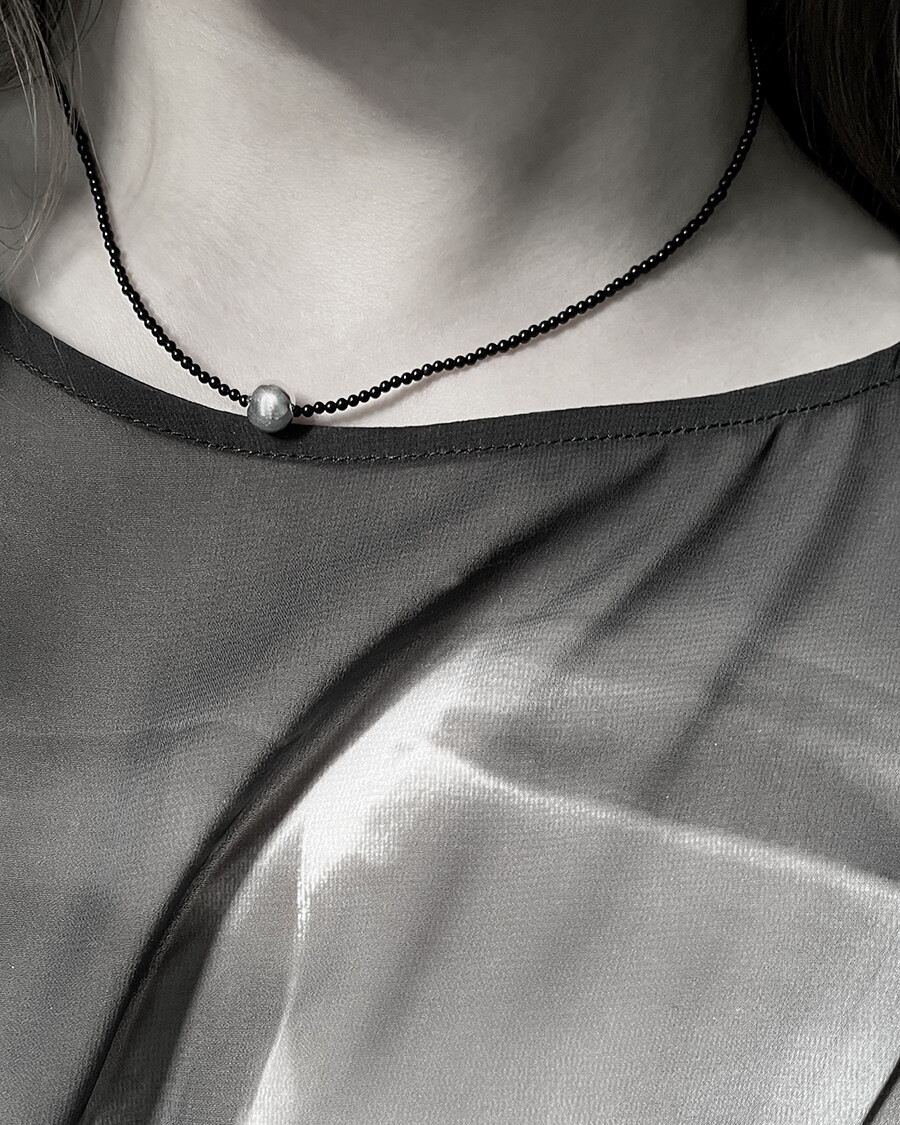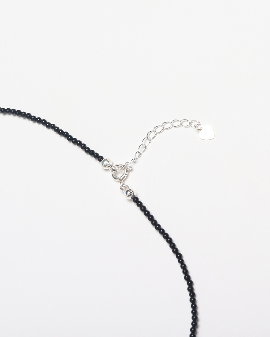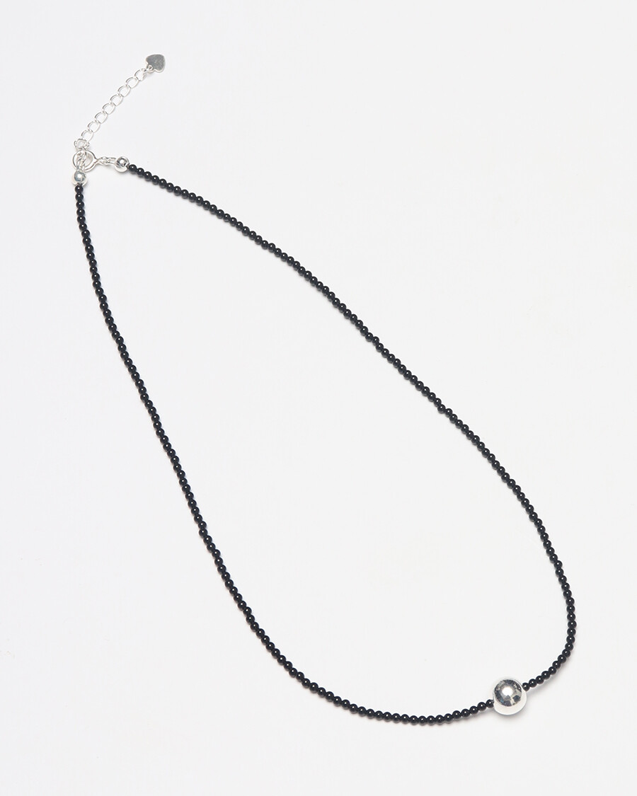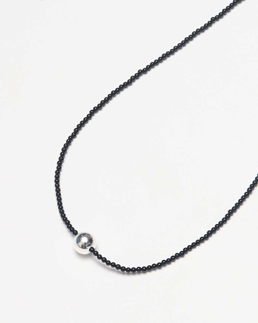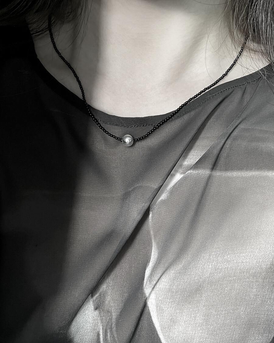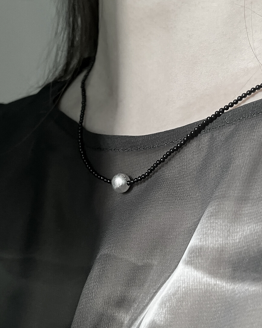 정교하게 깎은 오닉스 비즈 줄 중간에 8mm실버볼을 팬던트로 넣은 제품입니다.