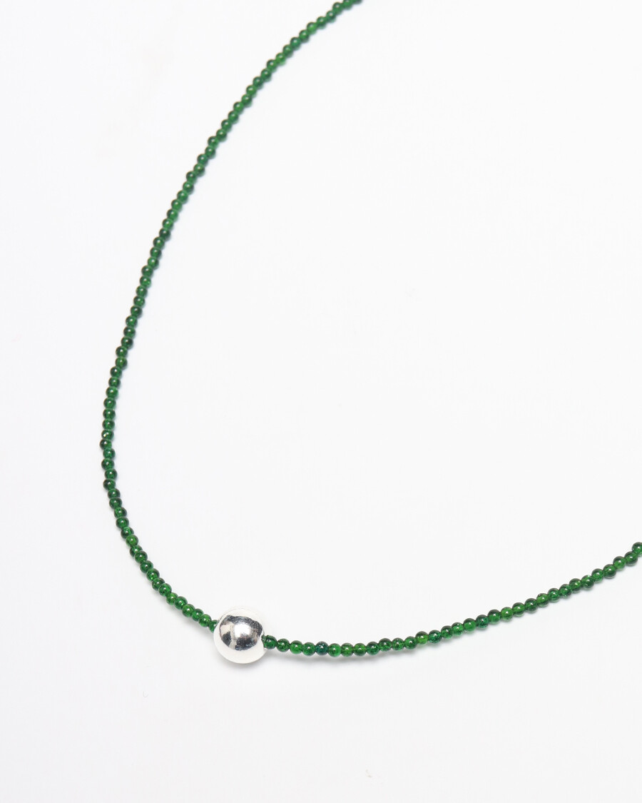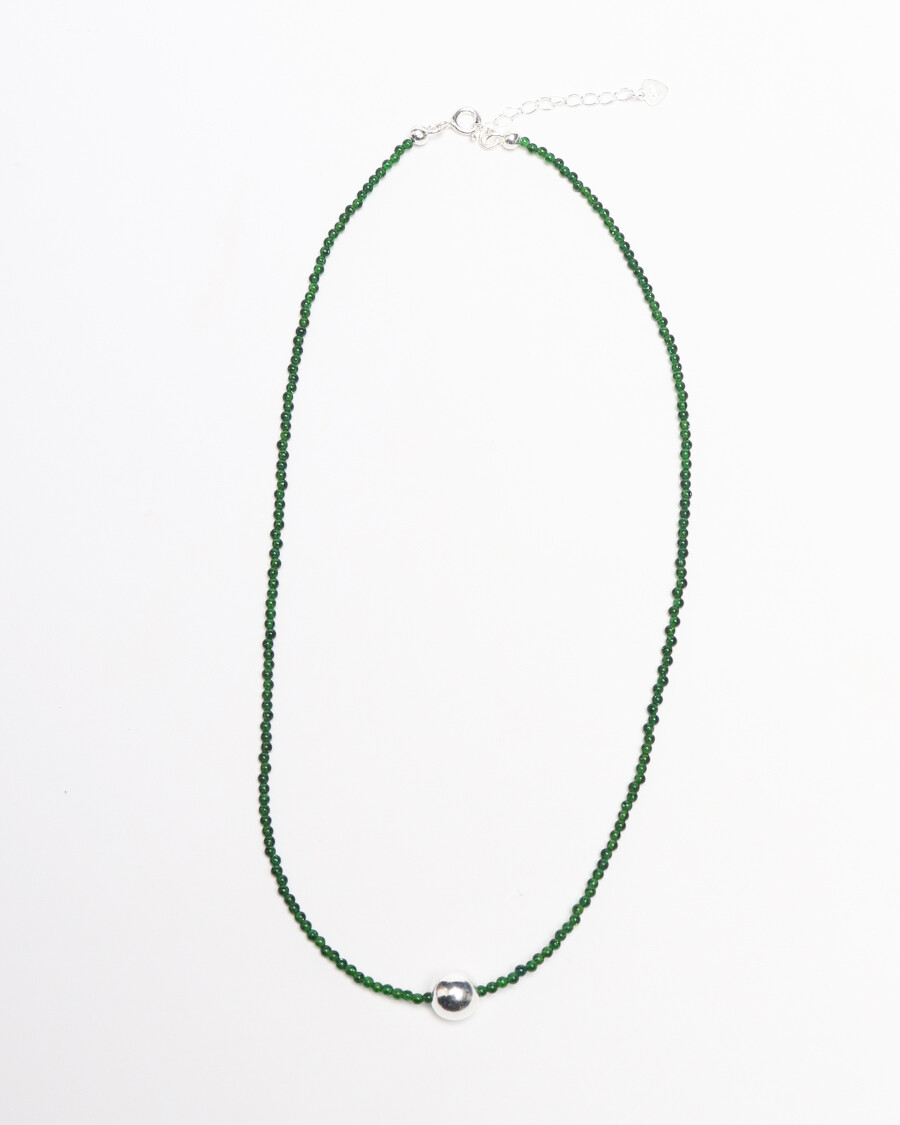 정교하게 깎은 녹사금석 줄 중간에 8mm실버볼을 팬던트로 넣은 제품입니다.