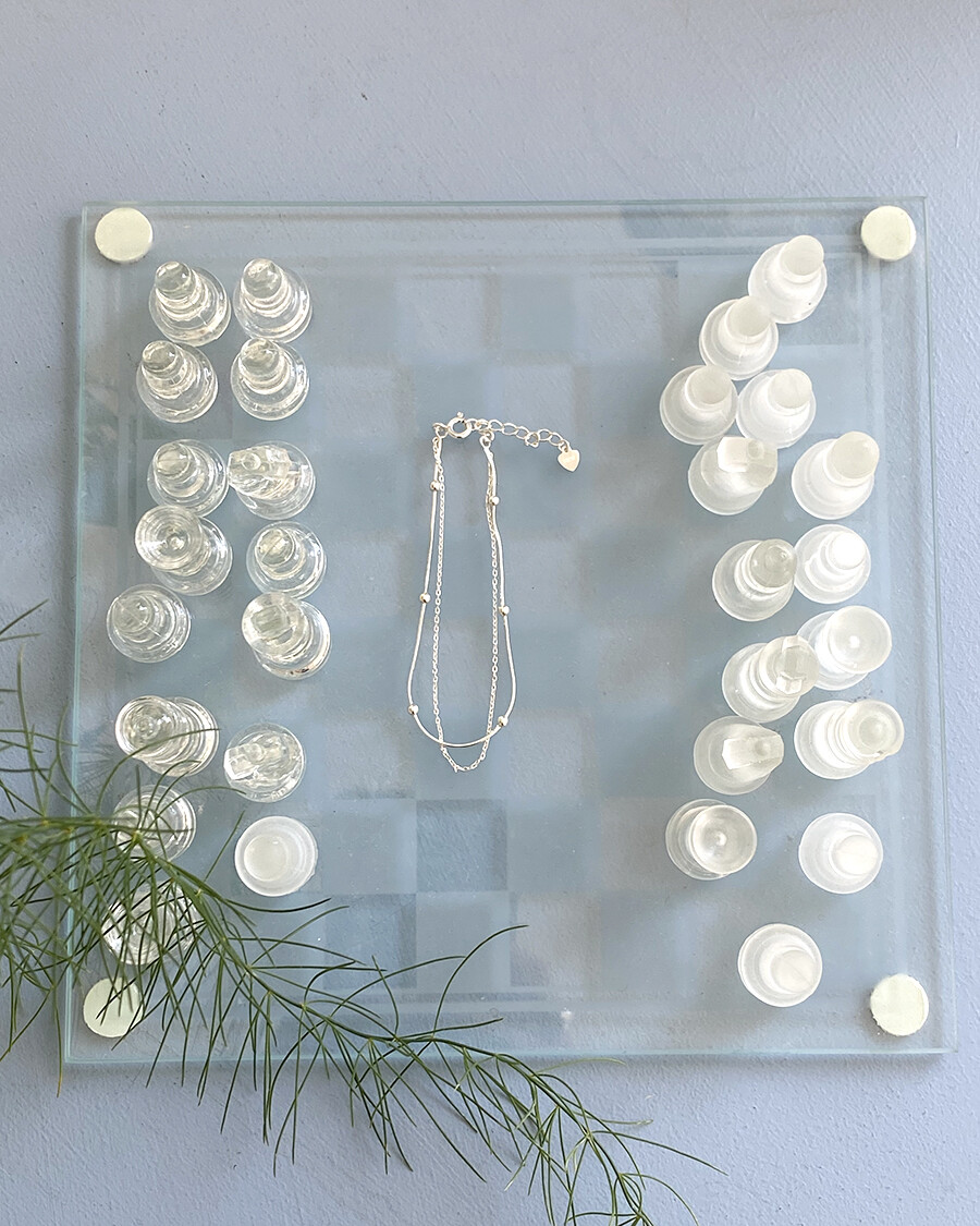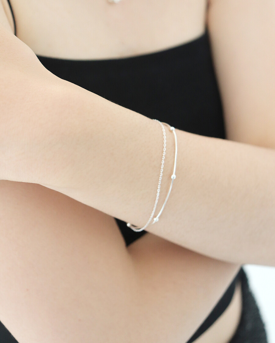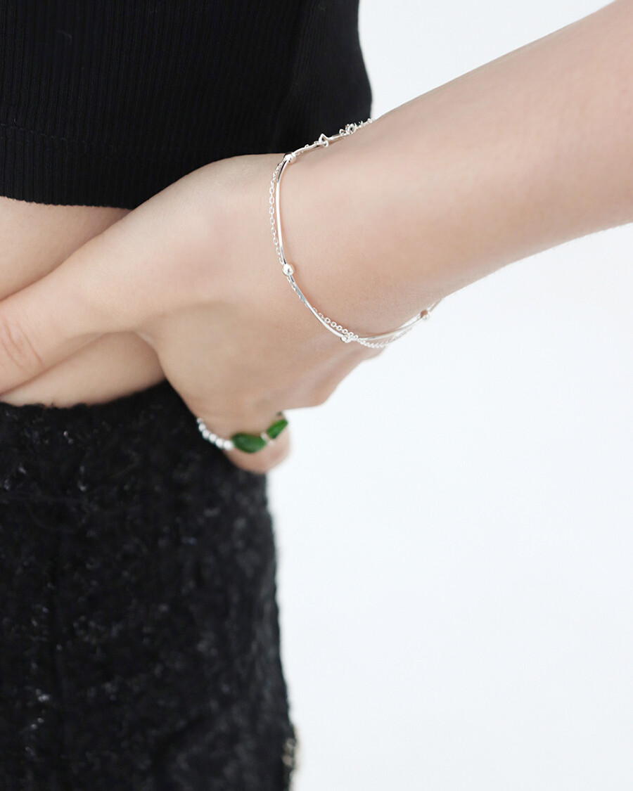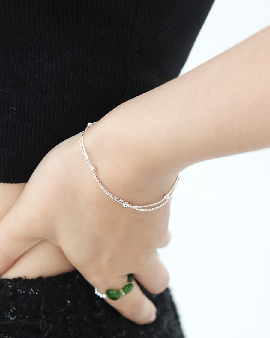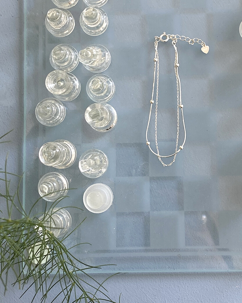 다른 두줄의 체인이 레이어드 되어있는 제품입니다. 길이조절 체인이 있어 편하게 착용이 가능합니다.