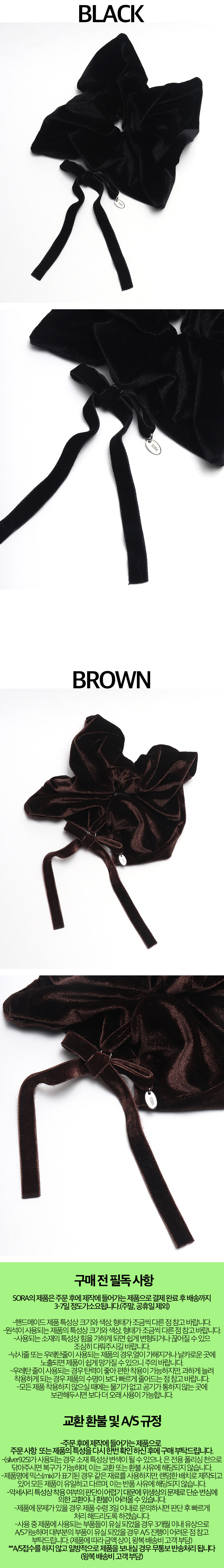 기존 스크런치와는 다른 사각 형태의 스크런치로 사랑스러운 볼륨감이 있는 제품이며, 같은 소재의 양면 벨벳 리본과 로고 각인 팬던트로 포인트를 준 제품입니다.