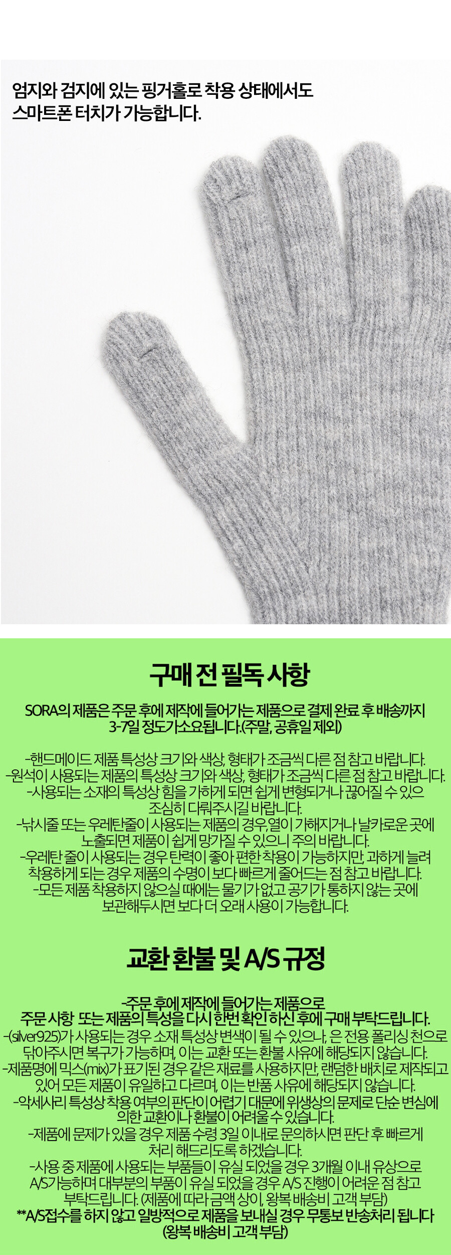 엄지와 검지에 있는 핑거홀로 착용상태에서도 전자기기 사용이 가능합니다.
