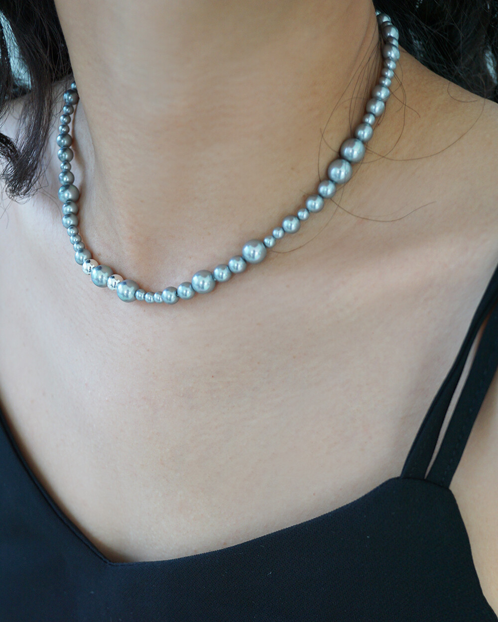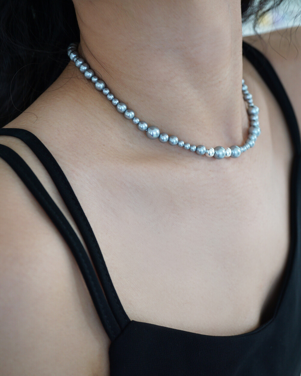 bubble pearl necklace (gray)